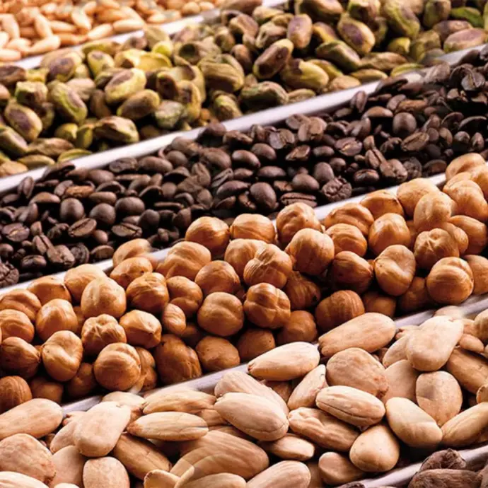Roaster Centosei is designed to work on a continuous cycle of automatic dried fruit and coffee processing; it has a tank capacity of 6 kg and offers the possibility of roasting 40 kg/h of coffee, dried fruit, hazelnuts, almonds, pistachios, barley, sunflower seeds, pumpkin seeds, cocoa beans.