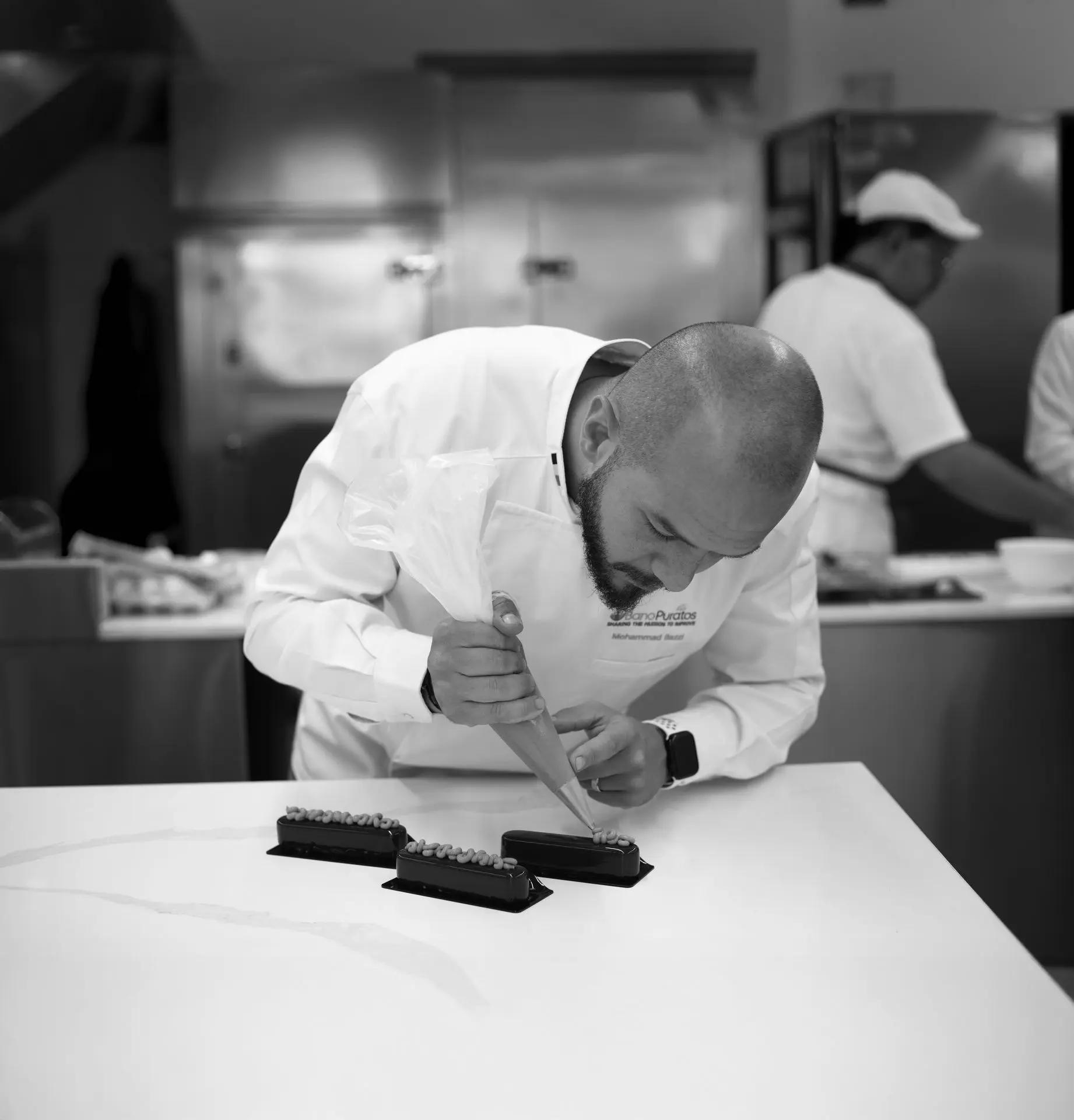 - Preparing fillings (vanilla, mango–zaatar, pistachio muhallabieh)