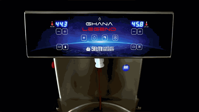 Legend, new version of the Ghana chocolate tempering machine, with adigital control panel that increases versatility of use and economy of operation .